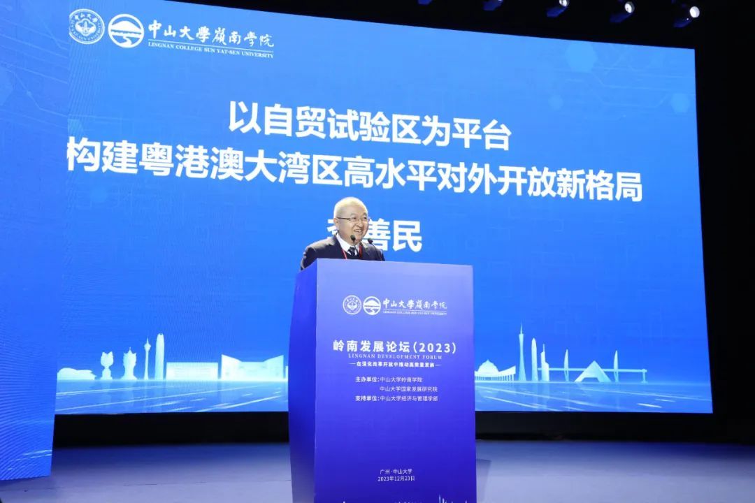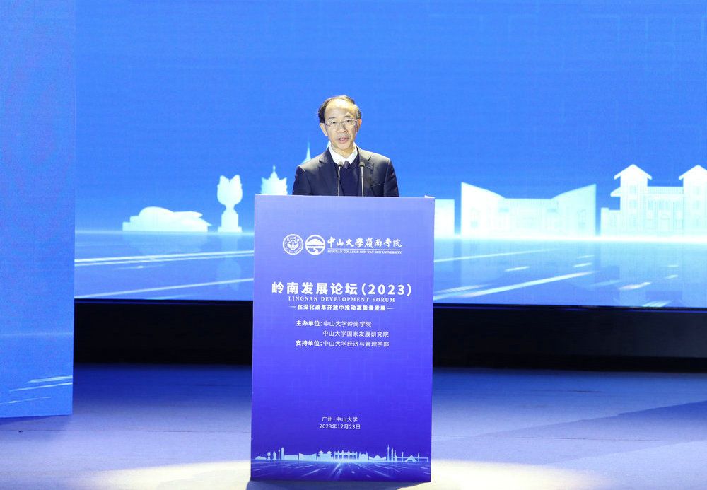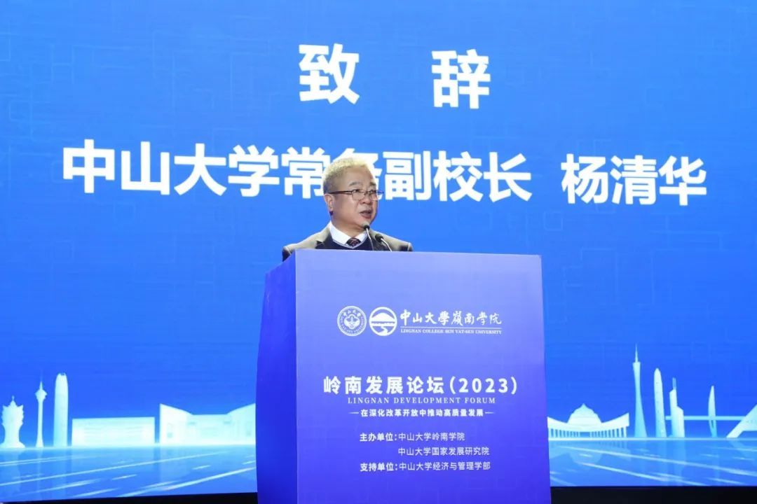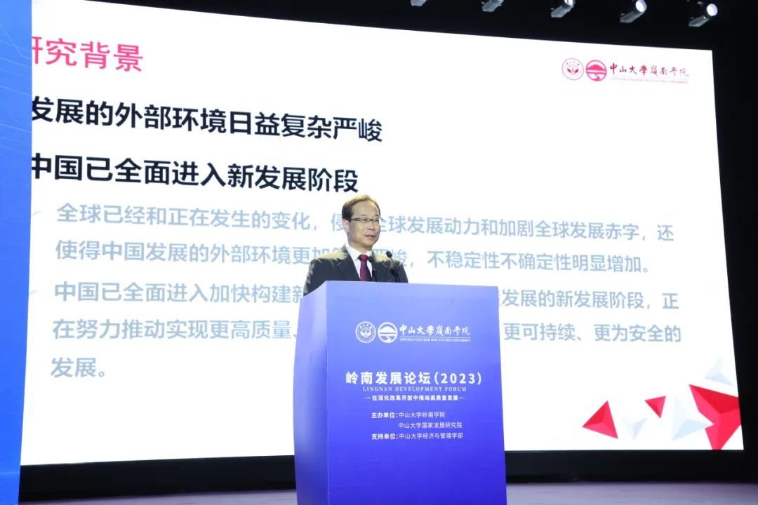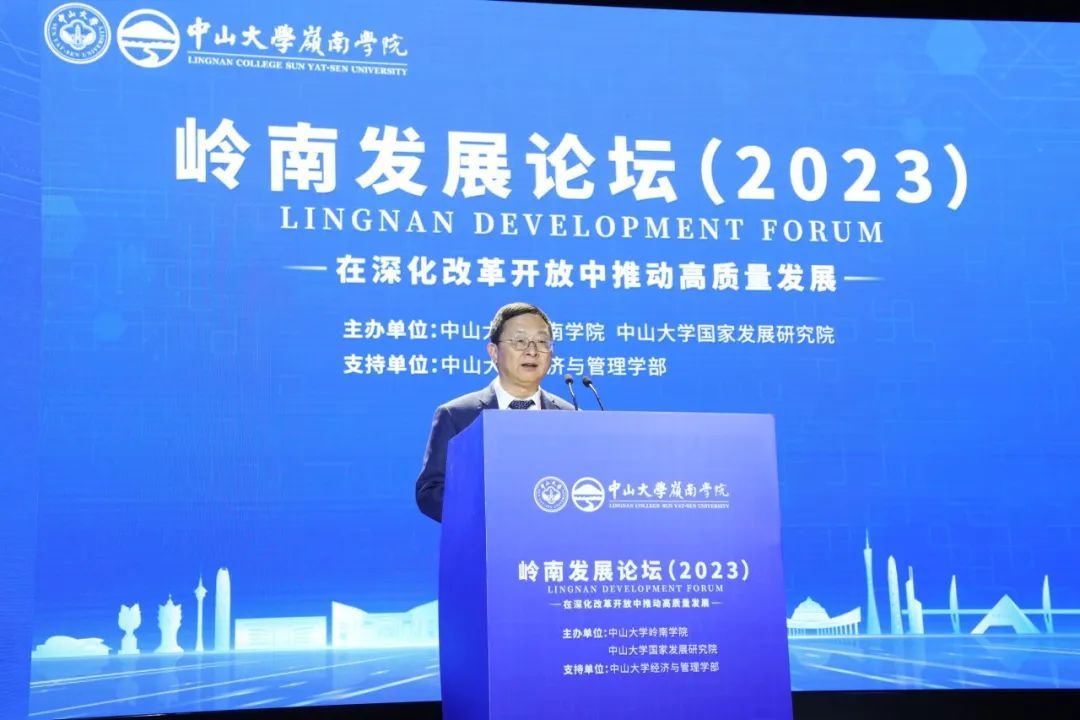 李善民教授首先对出席本届论坛的嘉宾、专家学者和师生校友表示热烈欢迎。李善民表示,今年是全面贯彻党的二十大精神的开局之年,也是改革开放45周年和党的十八届三中全会召开10周年,为积极推进基于中国式现代化实践的发展理论与政策研究,更好地服务国家和地方经济社会发展,在此召开首届岭南发展论坛,共同探讨在深化改革开放中推动高质量发展,意义重大。各位专家学者和参会代表分享真知灼见,必将产生有益的成果。