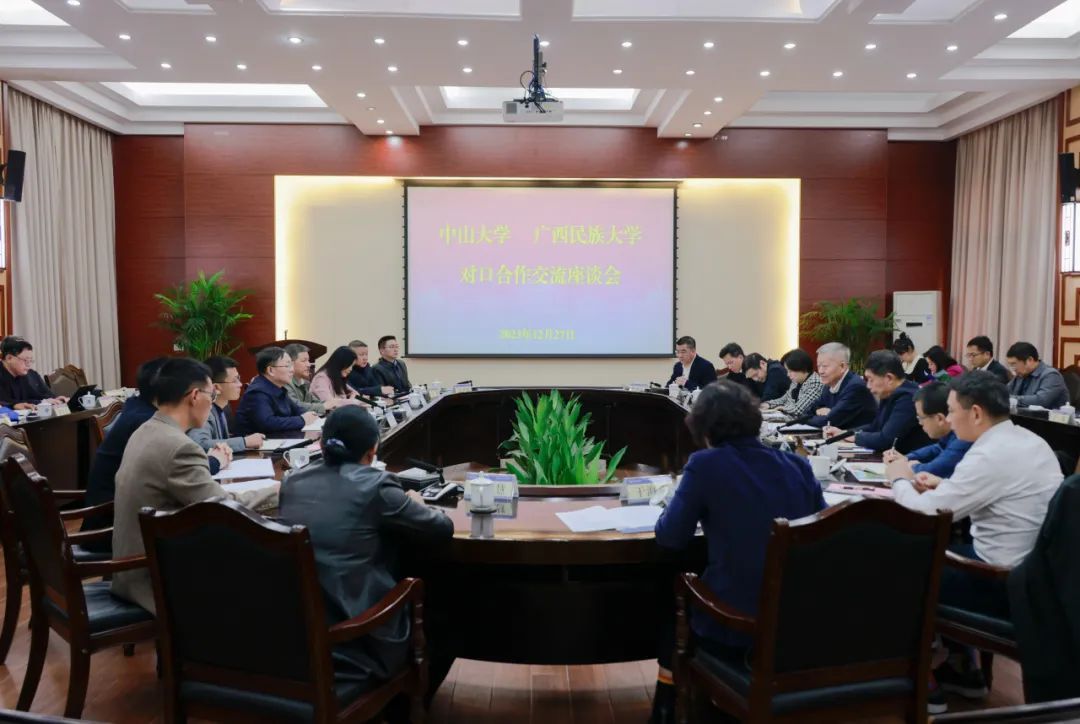 12月27日,陈春声书记一行来到广西民族大学,召开对口合作座谈会。2022年6月,我校与广西民族大学签订对口合作框架协议。广西民族大学党委书记卞成林感谢best365中国官方网站在人才培养、师资队伍建设、学科与专业建设、科学研究与学术交流等方面对广西民族大学给予的重要支持,并就下一步的合作提出了需求和建议。