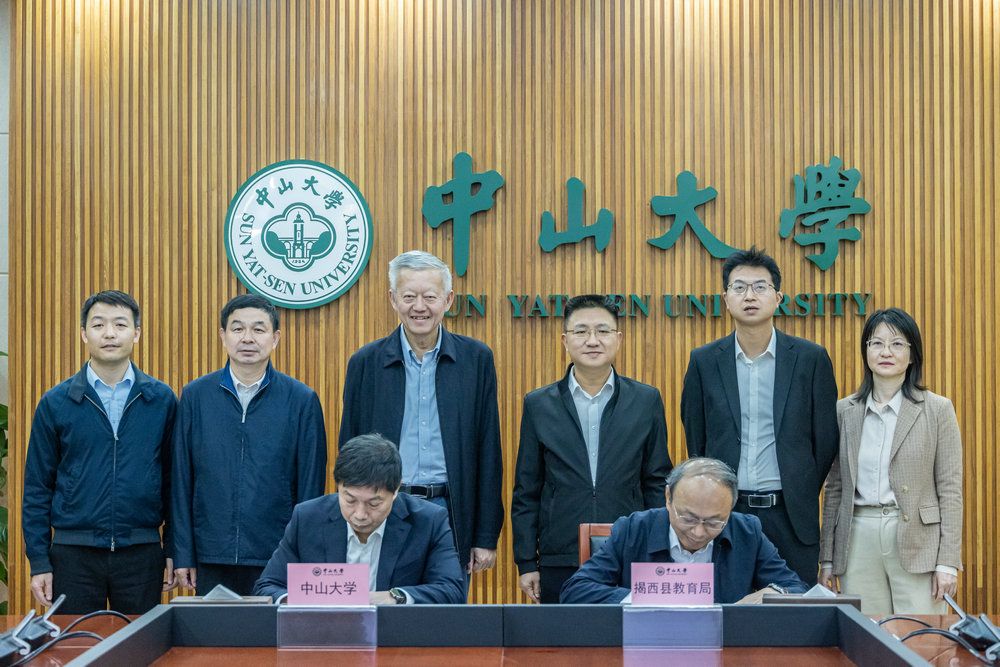 我校党委书记陈春声、副校长刘济科、校长办公室副主任潘云智;揭西县委书记陈晓青、县委副书记(挂职)、省政府办公厅纵向帮扶工作队队长蒋健、县政府副县长翁育慧共同见证了签约仪式,仪式在广州校区南校园中山楼313会议室举行。