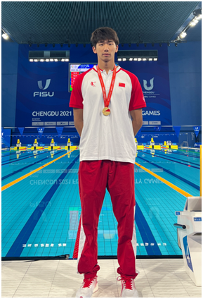 赵鑫辰同学在成都大运会男女混合4x100米自由泳接力比赛中获得金牌