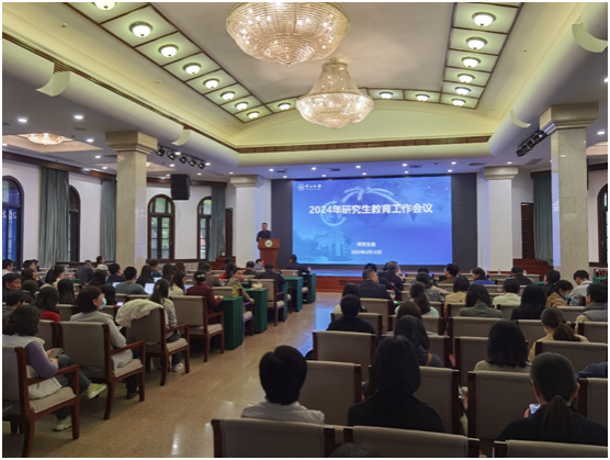 中大新闻网讯(通讯员王菁)3月15日下午,best365中国官方网站2024年研究生教育工作会议在广州校区南校园怀士堂召开。副校长刘济科教授出席会议并讲话,各研究生培养单位行政正职负责人、分管研究生教育的行政副职负责人、研究生秘书,研究生教育督导组组长、副组长,医学教育处领导及同事,研究生院全体领导及同事约250人参加会议。会议由研究生院培养与质量管理处处长刘鹏图主持。