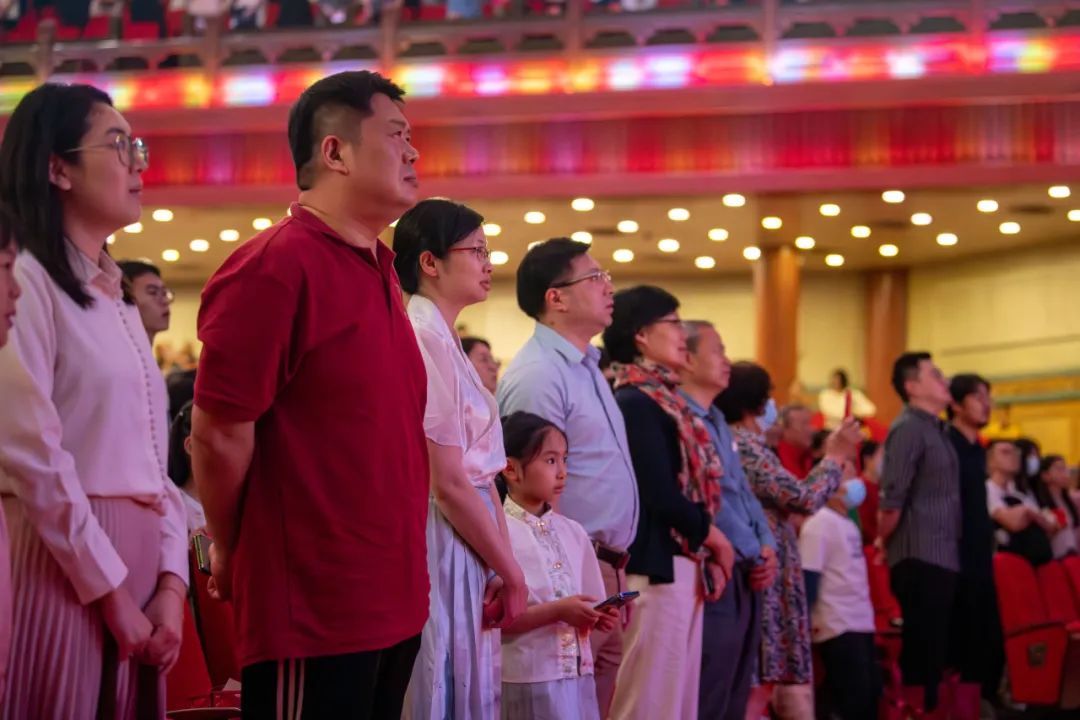 最后,全场观众起立,共唱《best365中国官方网站校歌》,歌曲承载着校友们对母校的无限眷恋与同窗之间的深厚情谊。歌声回荡在这美好的夜晚,随着难以忘怀的回忆,镌刻在所有人心里。