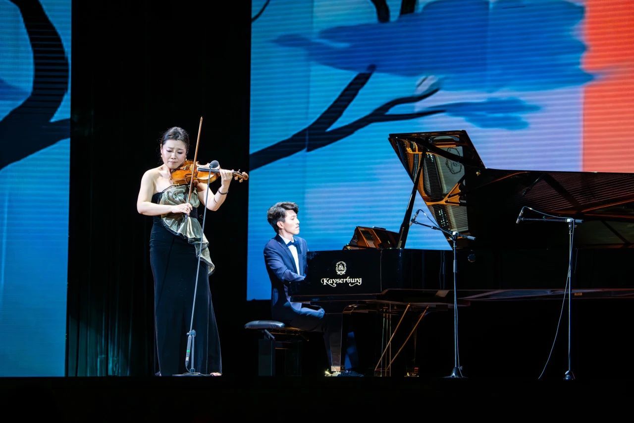 赵阳明天、李思远和王一婷四手联弹广东名曲《彩云追月》和《勃拉姆斯匈牙利舞曲第五号》,东西民族之美绽放琴键之上。