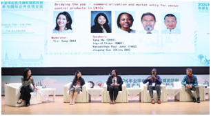 第二场圆桌讨论由CHAI中国代表杨亦子主持,讨论焦点为“弥合差距—中低收入国家病媒控制产品的商业化和市场准入”,参与讨论的嘉宾包括CHAI区域经理Yang Hu、盖茨基金会高级项目官Ingrid Etoke、IVCC监管顾问Vansanthan Paul John,以及郭家钢研究员。