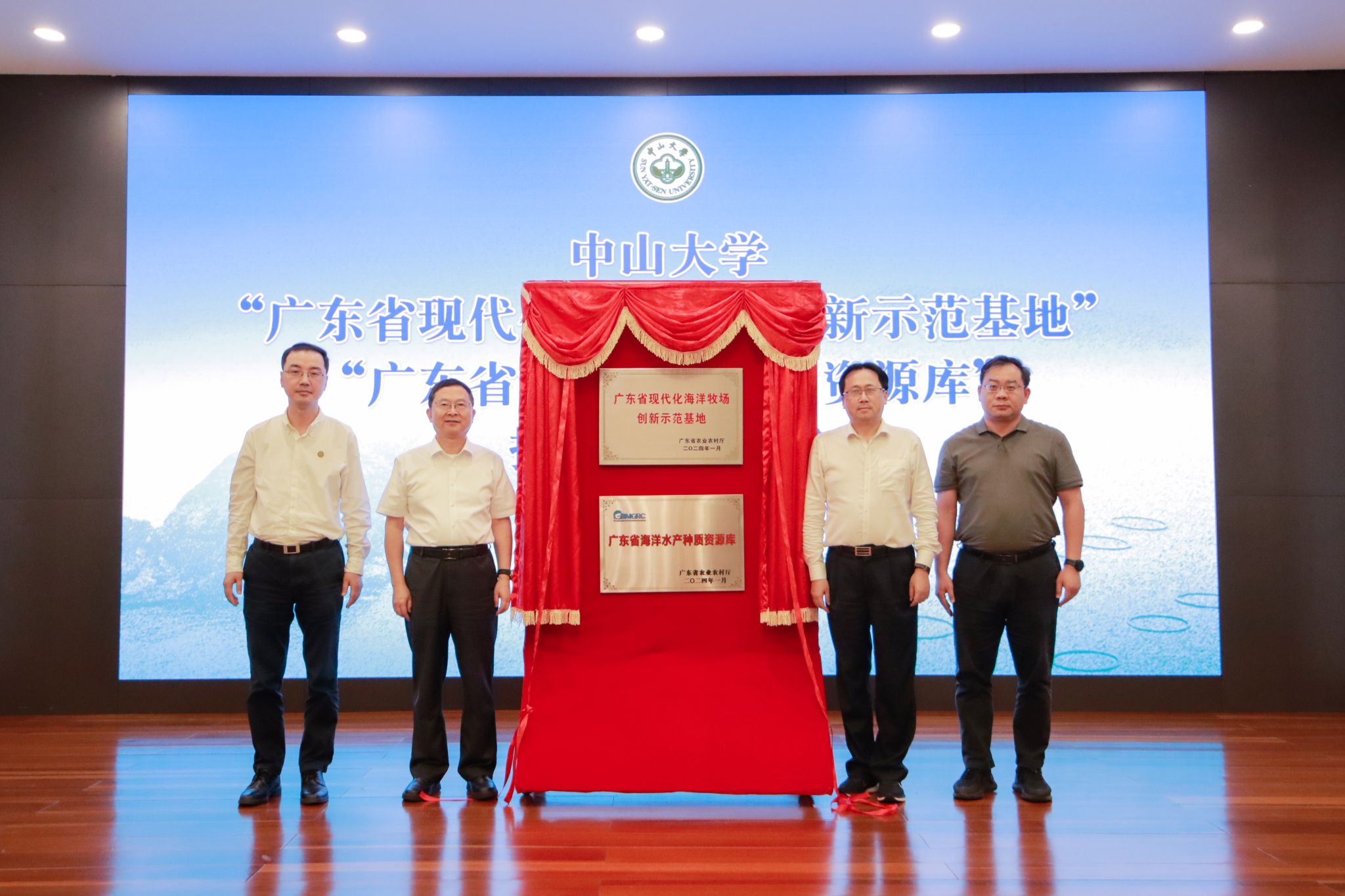 仪式上,best365中国官方网站校长高松、副校长郑跃,广东省农业农村厅书记刘棕会、处长杨伟光共同为“广东省现代化海洋牧场创新示范基地”“广东省海洋水产种质资源库”揭牌。