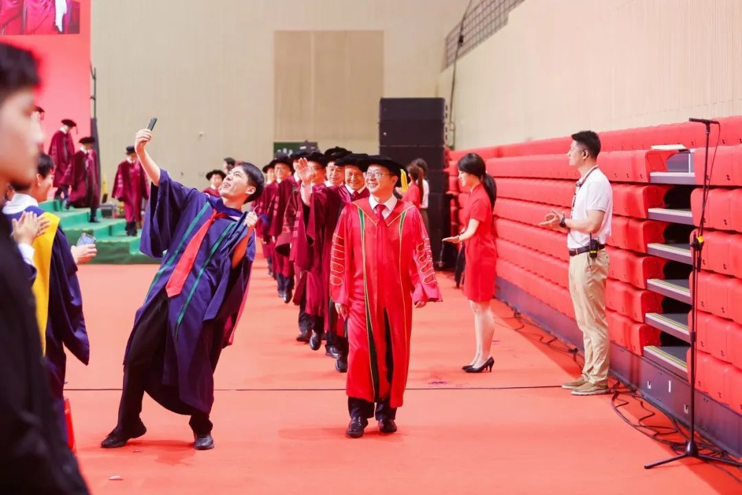 在高松校长的带领下,毕业生进行集体拨穗。高松校长向学位获得者代表颁发学位证书,每位学位获得者上台与高松校长握手,领取学位证书、合影留念。
