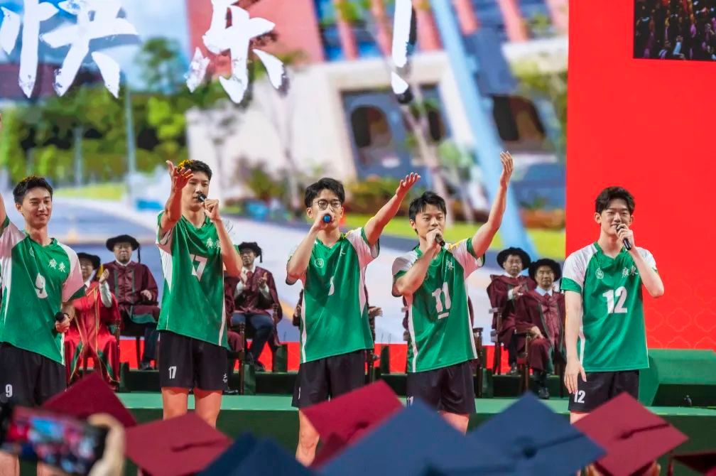 少年应有鸿鹄志,当骑骏马踏平川。勇夺中国大学生排球联赛冠军的中大男排队员与现场同学唱响《骄傲的少年》。