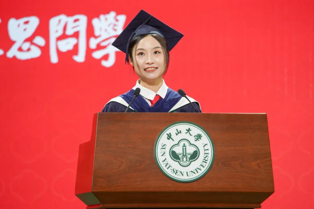 研究生毕业生代表、中山眼科中心2021级硕士研究生尚元君以自己的亲身经历鼓励学弟学妹,投身社会实践,服务国家需求,去到祖国最需要的地方。