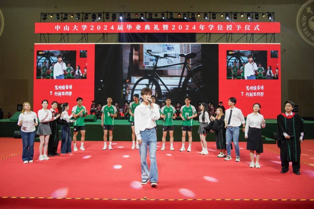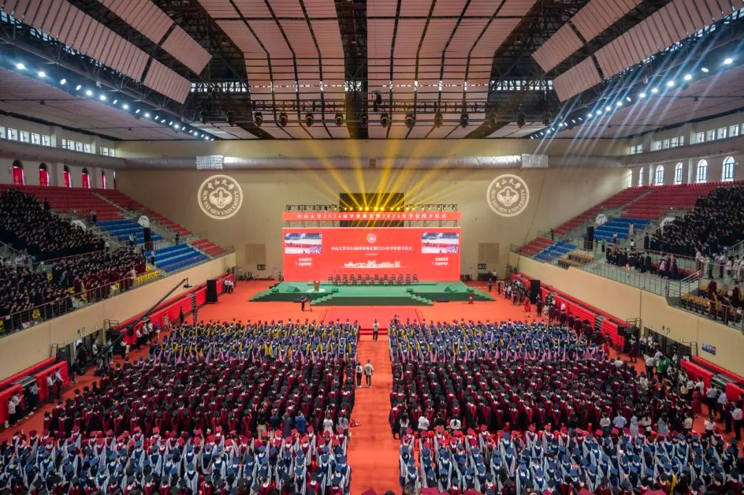 初见中大,我们学唱校歌,“吾校矗立 蔚为国光”是心中中大最美好的模样。如今,当熟悉的前奏响起,全体同学起立齐唱校歌,心中满怀对中大的深情,立志“振兴中华 永志勿忘”。伴随一声洪亮的“礼成”,best365中国官方网站2024届毕业典礼暨2024年学位授予仪式圆满完成。