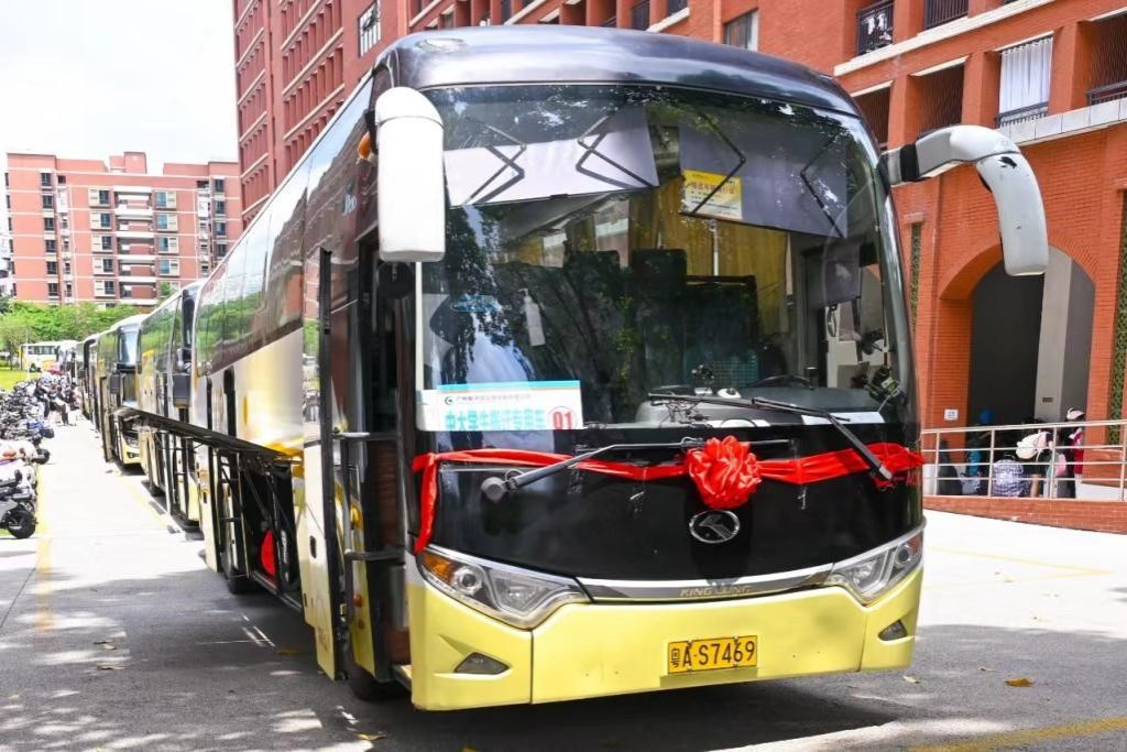 学生统一乘车来到新校区(党委宣传部 符桂杏摄)
