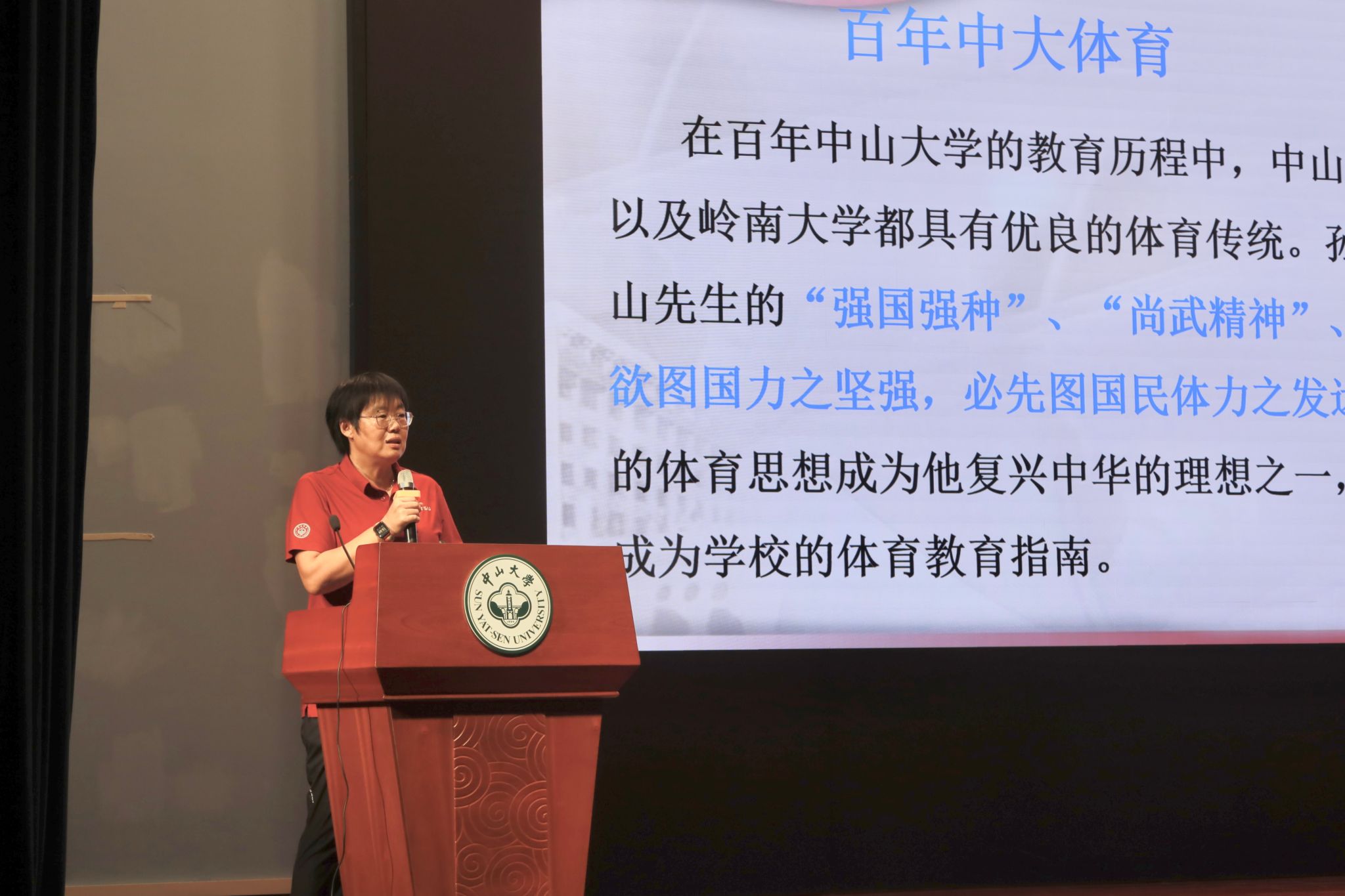 体育部副主任张新萍介绍中大体育