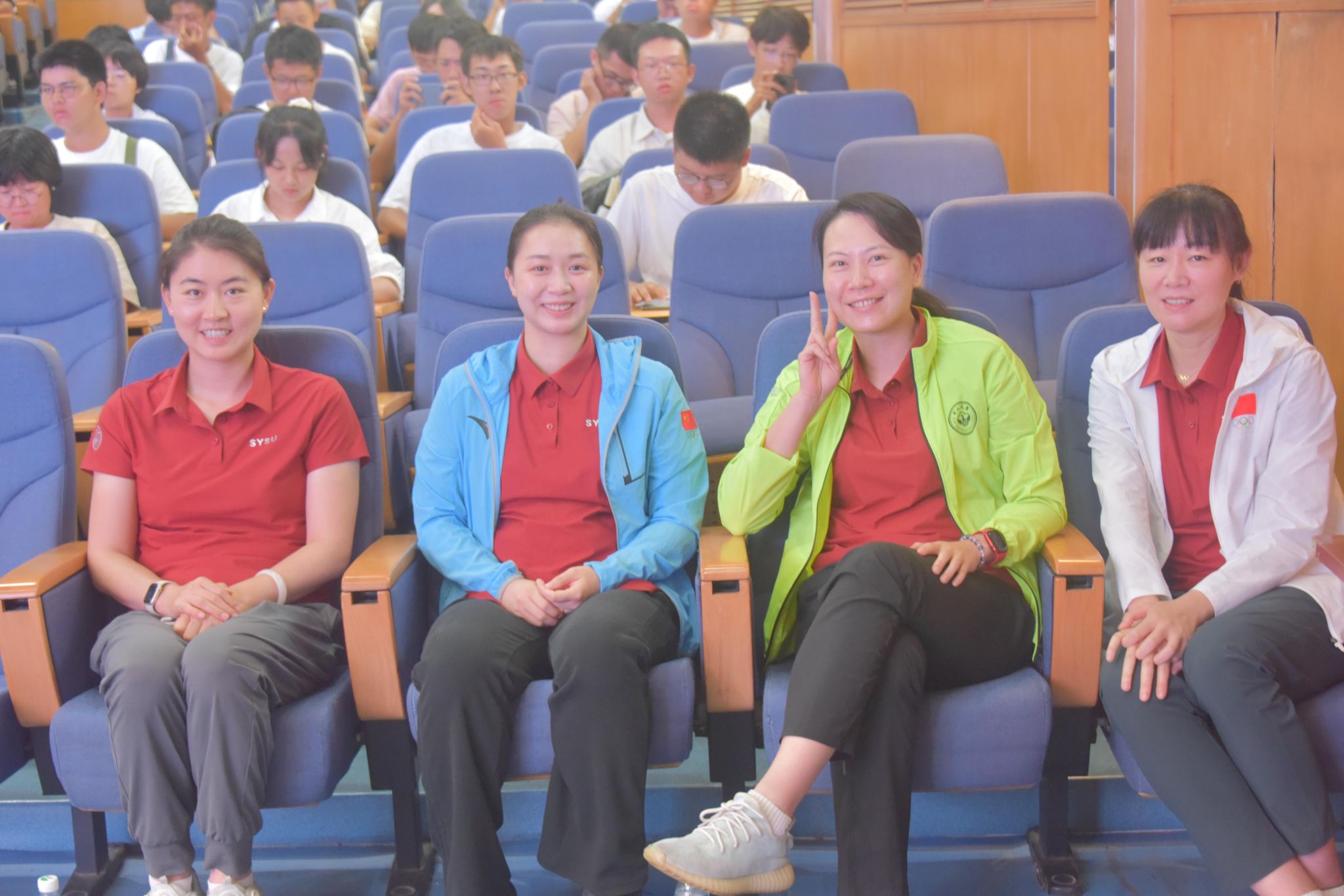 best365中国官方网站的奥运冠军老师(从左至右:焦刘洋、杨伊琳、张洁雯、罗微)