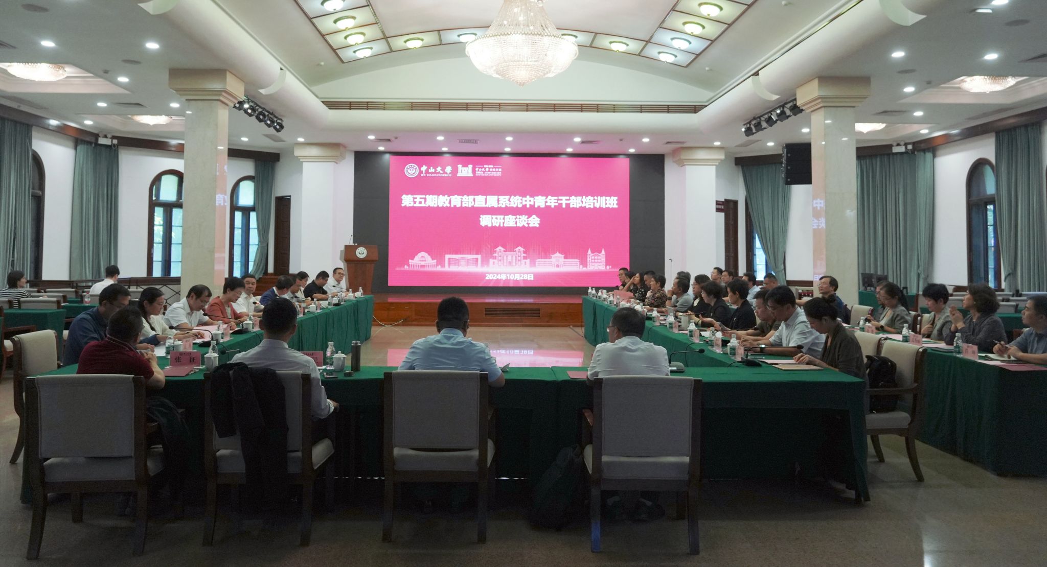 中大新闻网讯(通讯员陈美琪)近日,第五期教育部直属系统中青年干部培训班广东调研团(以下简称“调研团”)到我校调研交流。10月28日下午,调研座谈会在南校园怀士堂召开,围绕推进教育、科技、人才深度融合的新思路、新举措,尤其是创新人才培养的有效实践及有组织科研的探索与经验;弘扬教育家精神、加强教师队伍建设的探索等主题开展交流。学校党委常委、副校长刘济科,校长助理匡铭及相关单位负责人参加调研。座谈会由学校党委常委、组织部部长杨晓萌主持。