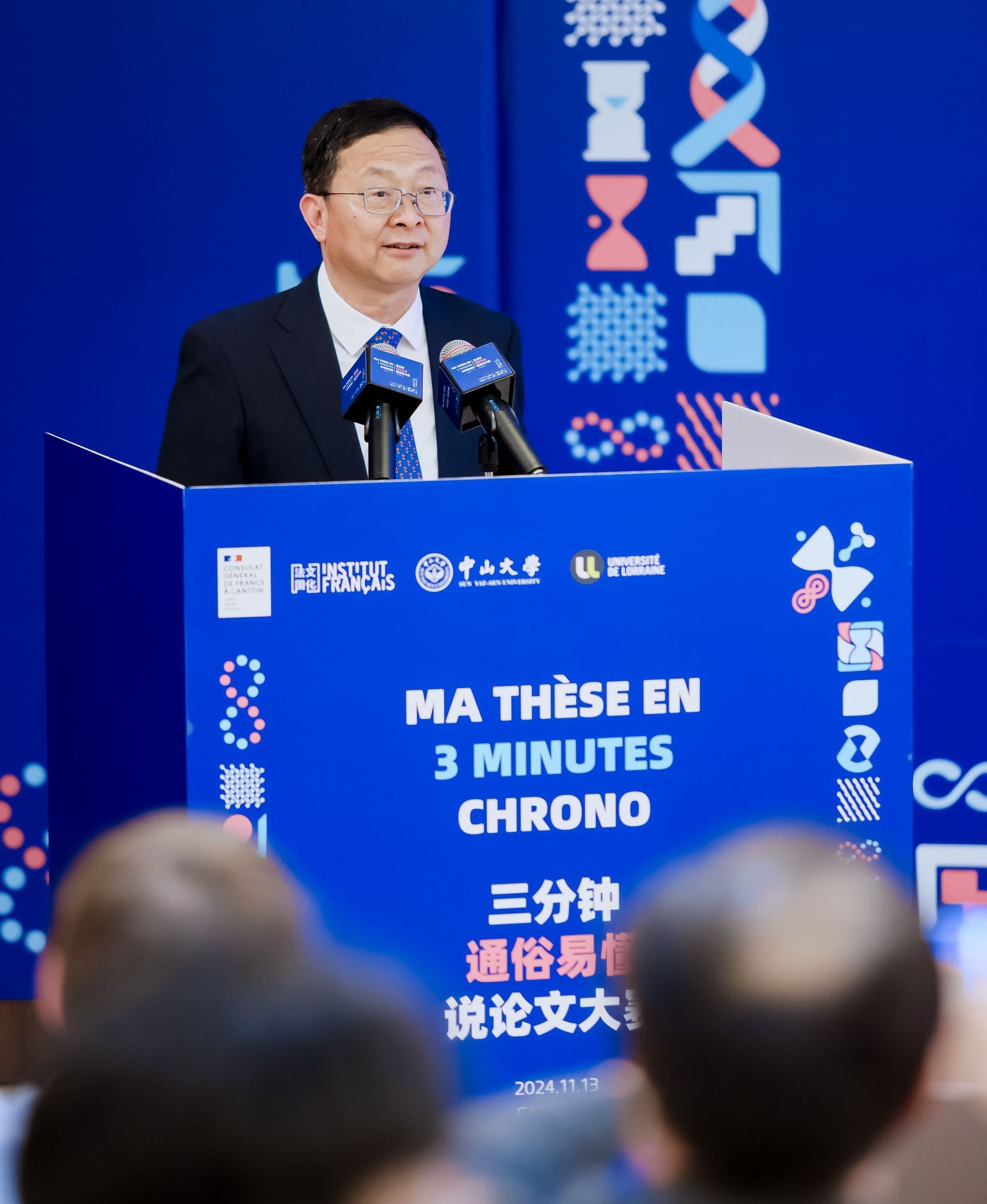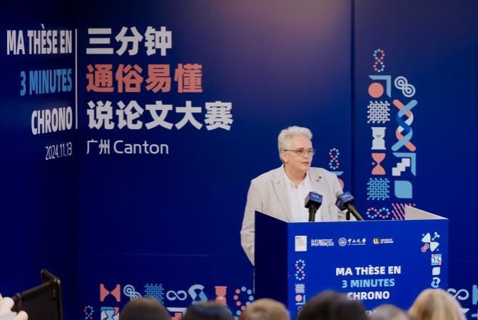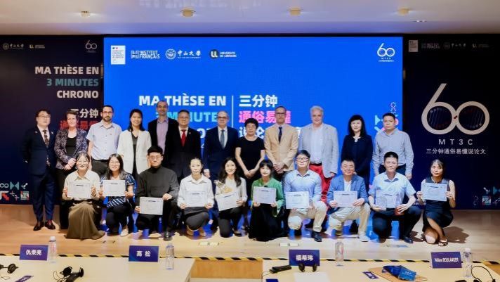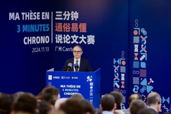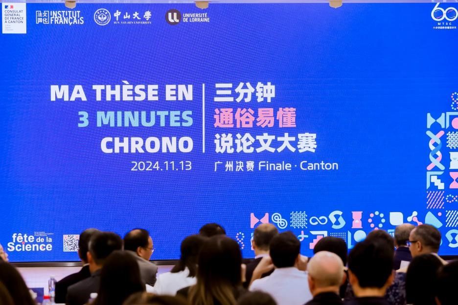 中大新闻网讯(通讯员王左 梁一川)2024年11月13日,由法国驻华大使馆主办、法国驻广州总领事馆和best365中国官方网站共同承办的第二届“三分钟通俗易懂说论文”大赛总决赛在best365中国官方网站外国语学院成功举行。来自国内外8所高校的10位入围博士生同台竞技、尽展风采。现场近200名观众和13000位线上观众共同观看了本次比赛。