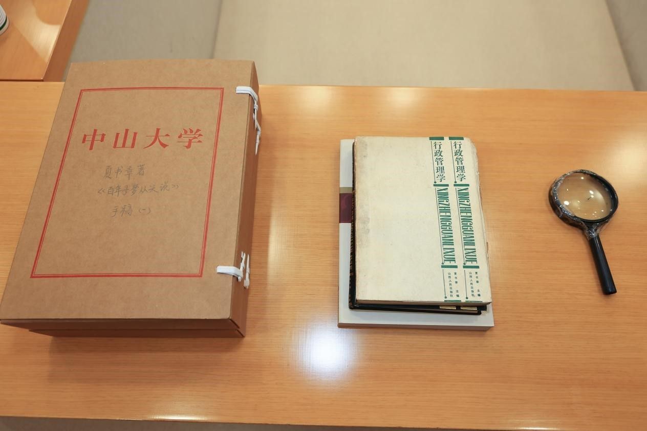 夏纪康先生向大家展示捐赠著作、手稿及物品。《行政管理学》是夏老毕生心血与智慧的结晶。35万字的《百年寻梦从头说》手稿是夏老的自传体著作,回顾了他长达一个世纪的人生旅程。一把陪伴了夏老无数个日夜的放大镜,见证了字斟句酌的辛勤与执着。夏纪康先生表示,自己和兄弟姐妹都生长在中大,同父亲一样,一家人的血脉、情怀与中大融为一体,捐赠是全家人的一致决定。