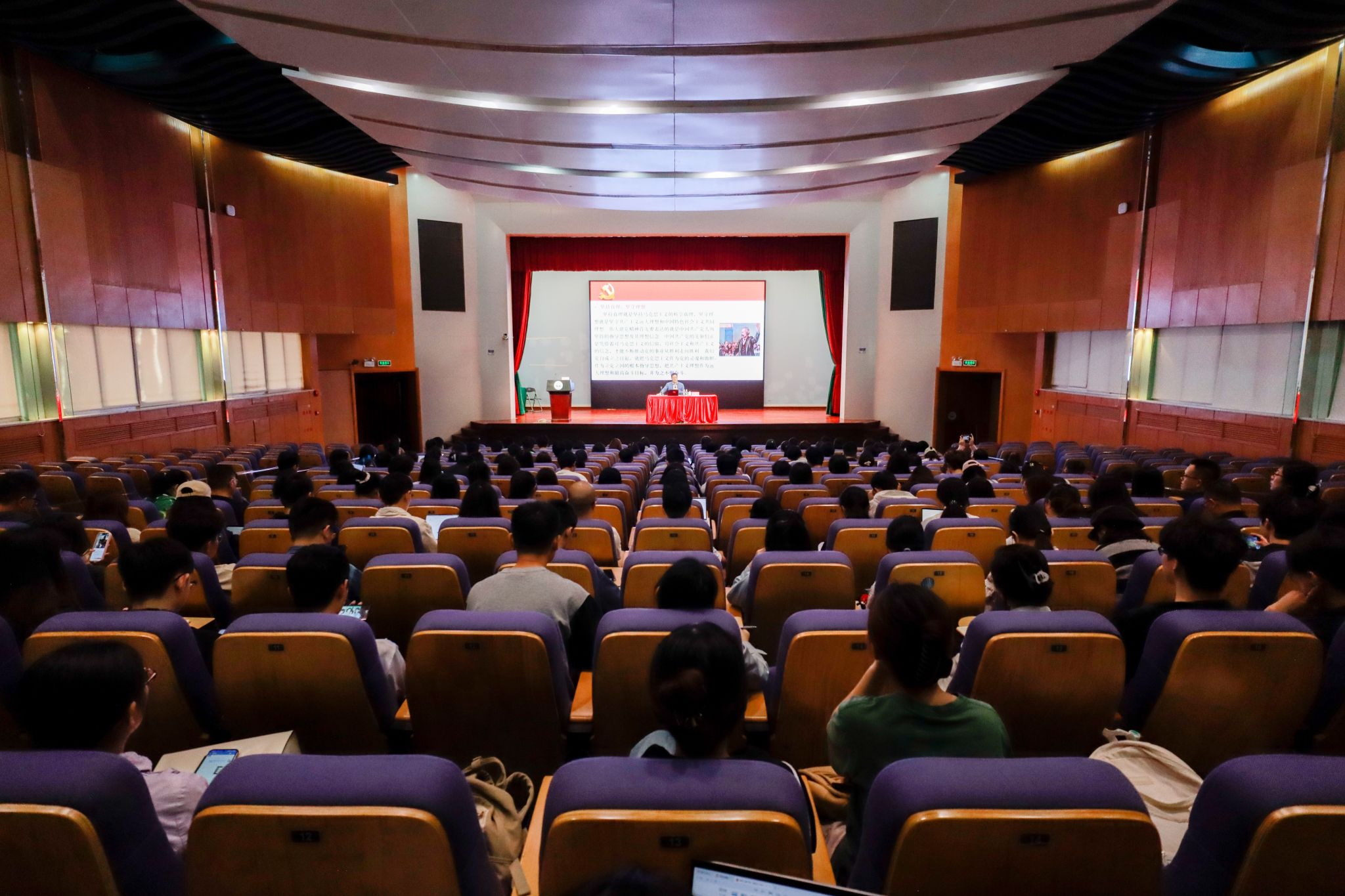 张浩教授以“让伟大建党精神绽放时代光芒”为题,深入浅出地讲解了什么是伟大建党精神、伟大建党精神的历史作用和时代价值以及如何准确把握伟大建党精神的实践要求。勉励广大师生继续弘扬光荣传统、赓续红色血脉,自觉做共产主义远大理想和中国特色社会主义共同理想的坚定信仰者和忠实实践者,既要善于增强使命意识来抓住机遇,又要善于发扬斗争精神应对挑战,做到既利用世界百年未有之大变局的正向因素推进中华民族伟大复兴,又通过推进中华民族伟大复兴推动世界百年未有之大变局正向发展。