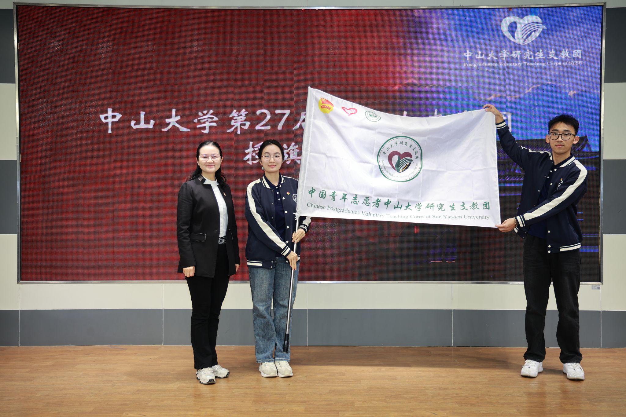 张琪副书记庄重地将支教团旗帜交到第27届研究生支教团代表手中。