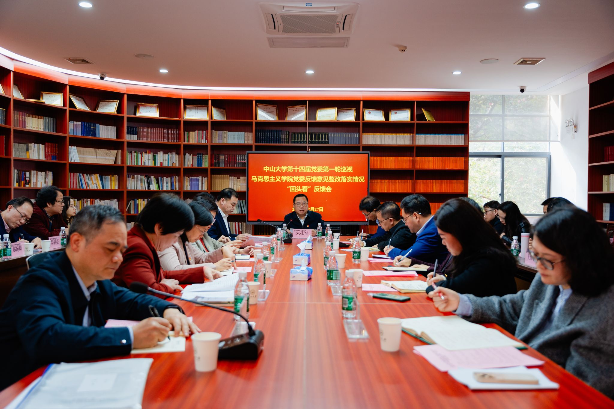中大新闻网讯(通讯员黄彦瑶 摄影吴鸿兆)12月27日,学校第十四届党委第一轮巡视反馈意见整改落实情况“回头看”(以下简称“回头看”)反馈会在广州校区南校园召开。会议首先传达学习了习近平总书记关于巡视工作的重要指示精神,通报了“回头看”发现的问题,对深化校内巡视整改作出部署。学校党委书记朱孔军出席马克思主义学院党委“回头看”反馈会并讲话。会议由学校党委副书记、纪委书记、国家监委驻best365中国官方网站监察专员刁振强主持。