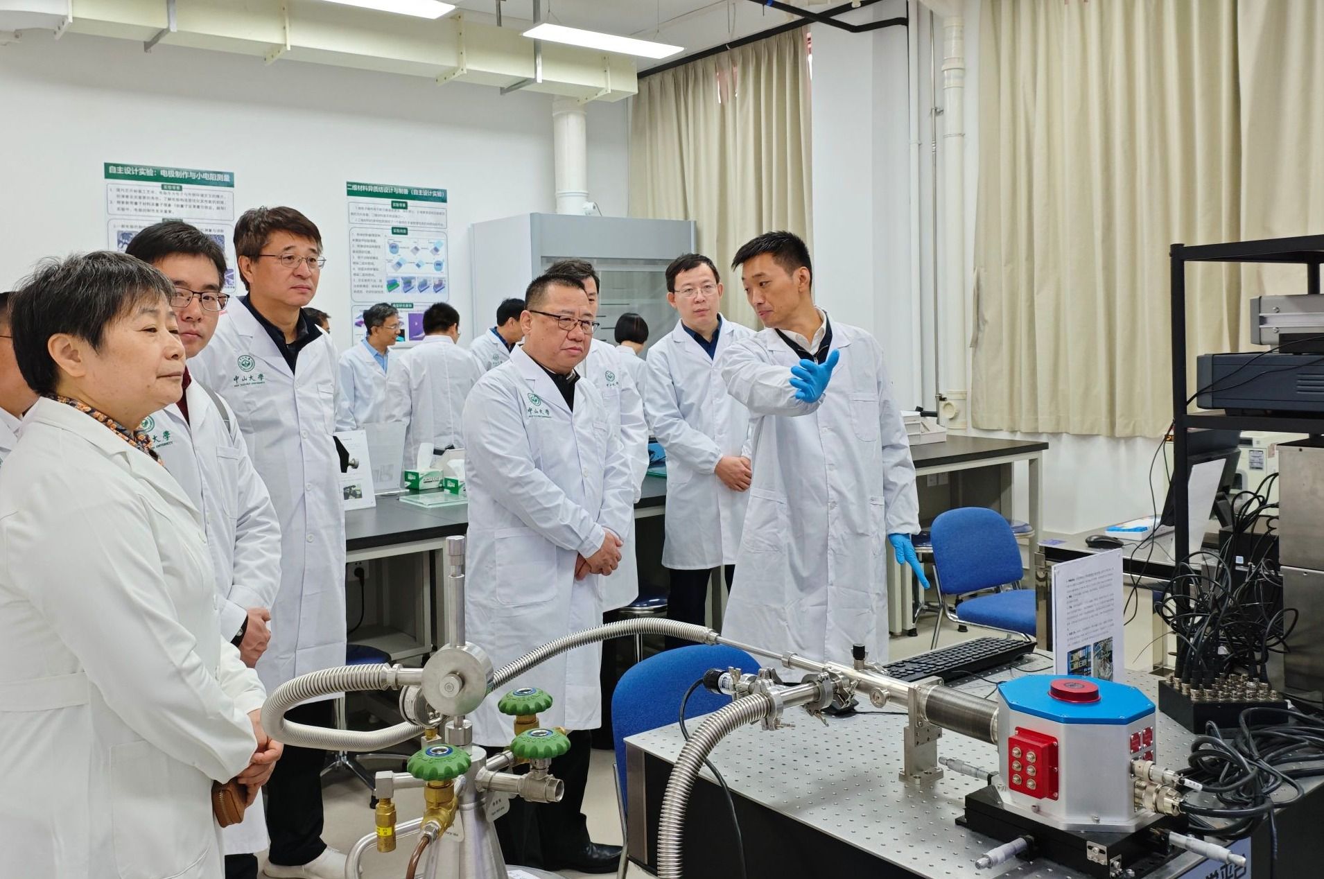 朱孔军书记、邰忠智副校长现场查看了广州校区南校园分析测试中心和物理学院的实验室安全管理工作情况,重点检查了实验室准入培训与考核、设备设施安全管理、实验场所日常安全管理、个体防护等方面的情况。