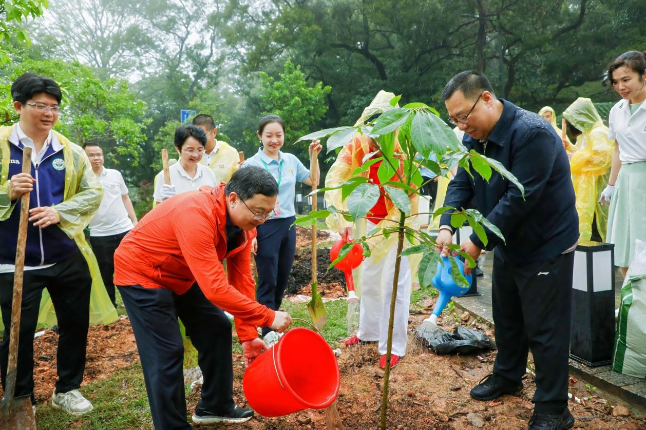 这次活动种植了金花木棉和铁冬青两种树木,均是对广州有特别意义的树种。金花木棉作为广州市花木棉的珍稀变种,在华南地区较为罕见。其通体金黄的花序独特而珍贵,由于天然繁殖存在基因重组障碍,三十余载仅有零星自然植株存世,幸得科研工作者们攻坚克难,成功培育。此次种植金花木棉,不仅延续了“英雄花开英雄城”的城市文脉,更彰显了科研工作者勇攀高峰的探索精神。铁冬青是在岭南大地默默生长了七百年的乡土瑰宝,兼具生态价值与人文情怀。其根、叶、果均可入药,发达根系可固氮改良土壤,抗污染能力达到国家二级标准,诠释了“生生不息”的生命哲学,寄托着对城市可持续发展的美好期许。