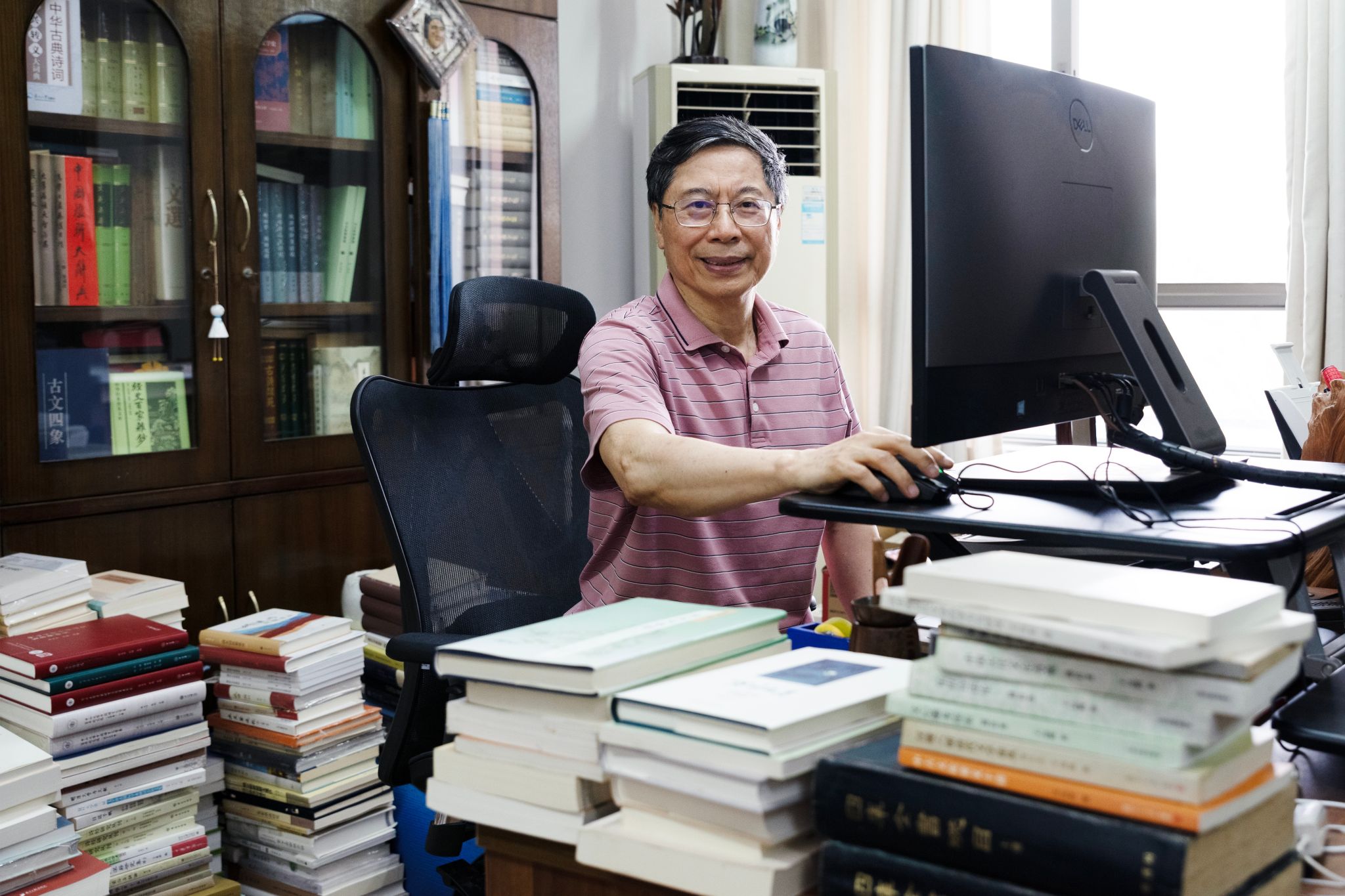 推开中文堂七楼那扇木门,眼前的时光仿佛被凝固:三面书墙如群山环抱,隔出两张桌案;一张笔墨纸砚静待挥毫,一张电脑与常用书册相伴。古籍与新著交错,师友赠书与家传旧册并立。这间约三十平方米的“澹斋”,是best365中国官方网站中文系吴承学教授日常读书和写作的地方,凝缩了他四十年学术生涯的剪影。