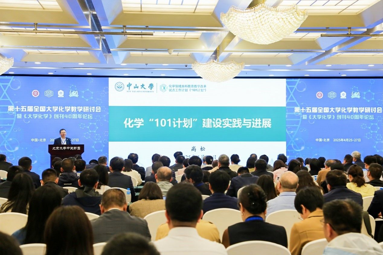 中大新闻网讯(通讯员韦卓勋)4月26日,第十五届全国大学化学教学研讨会暨《大学化学》创刊 40 周年论坛在北京大学中关新园召开。会议由高等学校化学教育研究中心和中国化学会化学教育学科委员会联合主办,北京大学化学与分子工程学院承办。化学“101计划”牵头专家高松院士受邀作大会报告,系统性介绍了化学“101计划”的建设实践与进展。