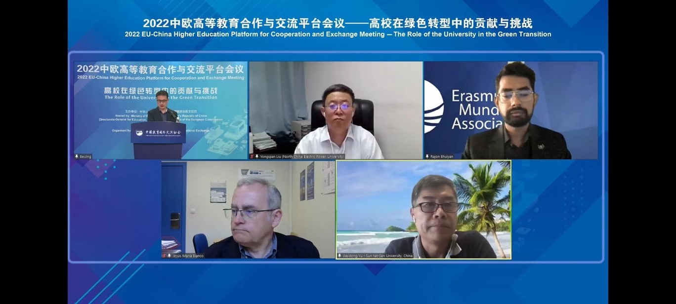 中大新闻网广州5月5日电(通讯员敖碧琦)近日,2022中欧高等教育合作与交流平台会议在线召开。此次会议以“高校在绿色转型中的贡献与挑战”为主题,双方深入探讨中国和欧盟高校在应对减排目标、实现绿色转型方面的探索与实践,引领和推进高校绿色创新,实现可持续发展。会议由中国教育部和欧盟委员会教文总司主办,中国教育国际交流协会承办。中国教育国际交流协会副秘书长傅博和欧盟委员会教文总司国际合作部亚洲政策官员阿准安·维尔(Adrian Veale)共同主持会议。来自中国和欧盟国家的500余名代表参加了本次会议。