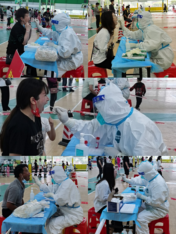 虽然采样过程很辛苦,但是她们脸上依然洋溢着开心幸福的笑容。她们说,能为人民群众贡献自己的一份力量是每一个医护人员的心愿,没有比这更有意义的事了。