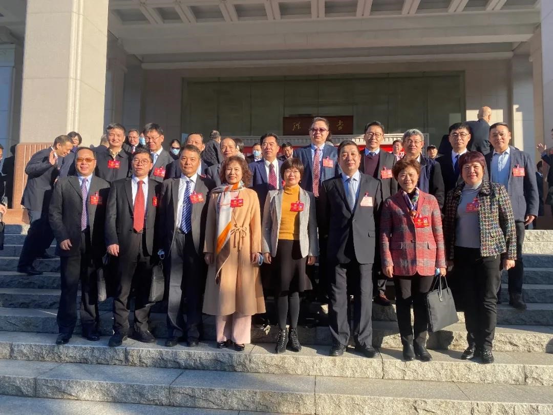 我校省政协委员董美玲(右八)、汪华侨(右七)、吴钟凯(右三)作为2021年优秀提案的领奖代表上台领奖(来源:党委统战部)