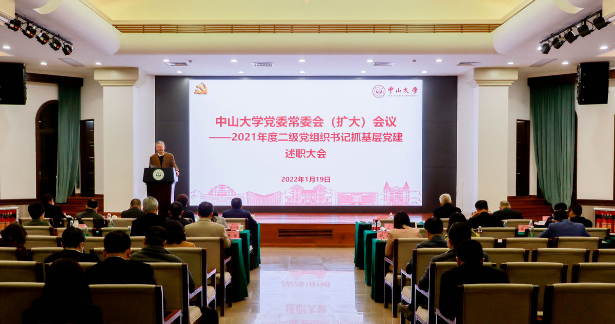 中大新闻网1月22日广州电(通讯员吴玉攀)1月19日,学校党委常委会(扩大)会议在南校园怀士堂举行,会议听取2021年度全校二级党组织书记抓基层党建述职报告。根据学校疫情防控工作要求,大会采取线上线下相结合的方式,在珠海校区和深圳校区设置分会场。学校党委书记陈春声主持会议。