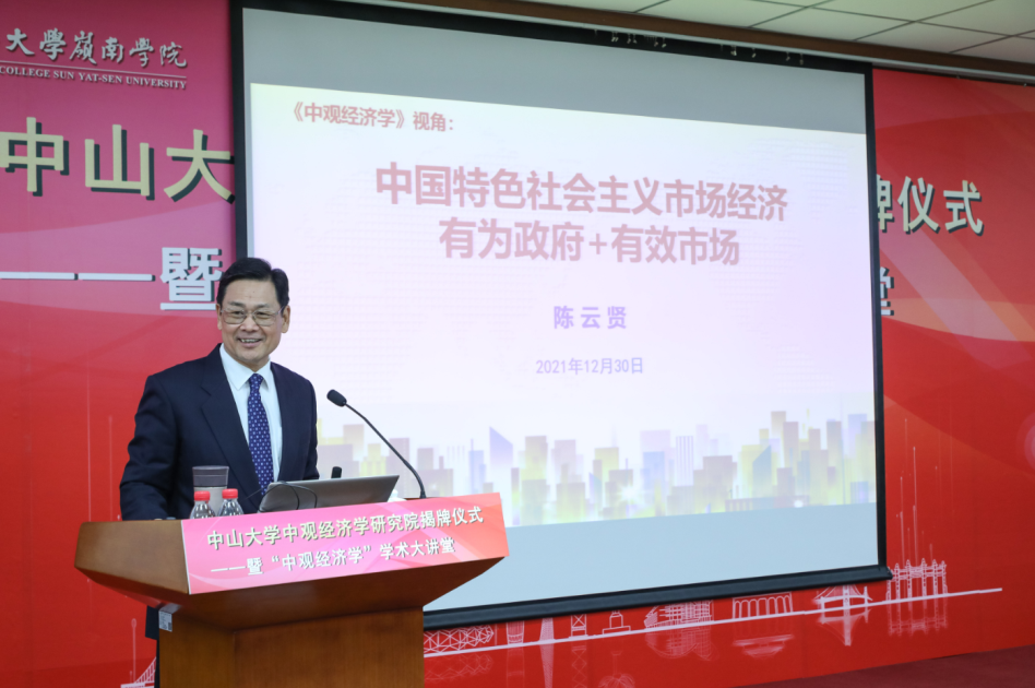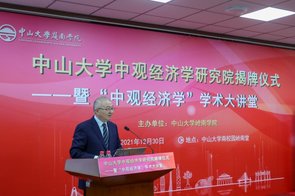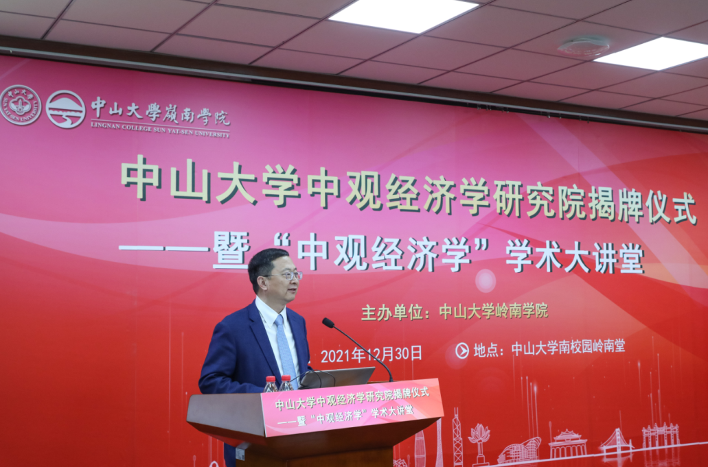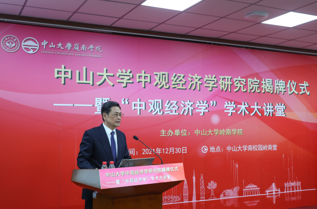 中大新闻网1月3日广州电(通讯员陈菊红)2021年12月30日,best365中国官方网站中观经济学研究院揭牌仪式暨“中观经济学”学术大讲堂在best365中国官方网站南校园岭南堂三楼讲学厅成功举行。best365中国官方网站党委书记陈春声教授、best365中国官方网站校长高松院士、广东省人民政府原副省长陈云贤教授、best365中国官方网站副校长兼岭南学院院长李善民教授,岭南学院党委书记黄毅同志、副院长鲁晓东教授、副院长刘彦初副教授等出席了本次活动。揭牌仪式由best365中国官方网站副校长兼岭南学院院长李善民教授主持。