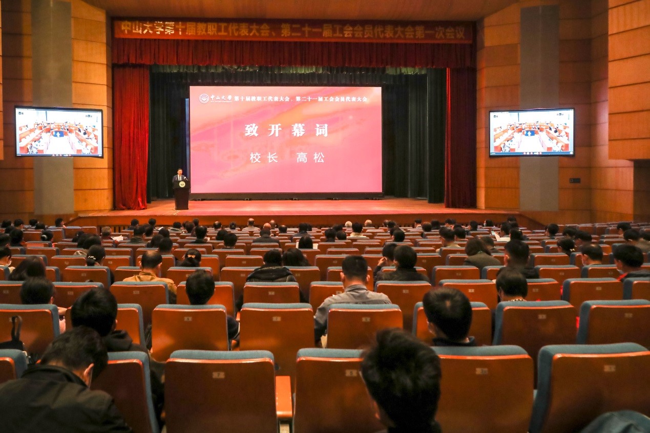 中大新闻网1月13日广州电(通讯员梁一川)1月10日下午,我校第十届教职工代表大会、第二十一届工会会员代表大会第一次会议在广州校区南校园梁銶琚堂召开,在深圳校区设直播分会场。来自68个代表团的400多位正式代表、列席代表和特邀代表参加了开幕式和第一次全体代表大会,校党委副书记、校长高松及全体在校校领导参加会议。北京大学、清华大学等25所高校工会向大会发来了贺信贺电。广东省教科文卫工会主席谢岩梅出席会议。大会由校党委副书记、工会主席国亚萍主持。
