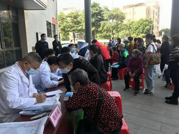 来自我校民革、农工党、九三学社、侨联等统一战线组织的十一位医疗专家共同组成专家团队,涉及泌尿外科、耳鼻喉科、心血管内科、康复科、骨科、内科、儿科、妇科等多个学科。前来就诊的群众络绎不绝,短短半天时间就接诊群众150余名。专家们耐心细致地为群众问诊、检查、诊断,并有针对性地进行相关保健知识的宣传,让群众在家门口就能享受优质的医疗服务,为粤北曲江区百姓送上一份健康福利。