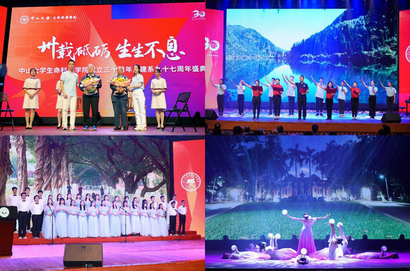 庆典大会上首次放映了由学院师生演出的院史微电影《行·先》,学生与老一辈优秀党员进行了信仰对话,合唱了《生物系歌》。大家欣赏了师生创作的诗朗诵《祝福你,生科人》和歌舞表演《灯火里的中国》。最后,伴随着中大校友之歌,庆典大会圆满落幕。生命科学学院将站在时代的新起点上,展现新风貌,开启新征程,创造新辉煌。