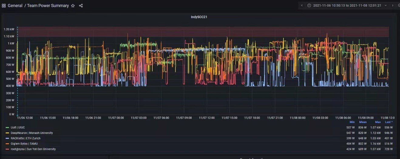 IndySCC是本次超算大会新增的学生高性能计算竞赛项目,参赛队伍来自伊利诺伊大学香槟分校、苏黎世联邦理工学院等世界级计算机强校,我校战队是IndySCC赛事唯一的中国队伍。本次IndySCC的比赛形式和传统的学生超算竞赛相同,参赛队伍需要在48小时内,部署和优化经典分子动力学应用Gromacs和并行密码破解应用John the Ripper,以及比赛开始后公布的“神秘应用”:有限差分算子加速库Devito。参赛队伍需要在比赛前综合考虑,选择集群机器的配置,比赛时合理利用有限的计算资源,并且全程将机器总功耗控制在1100w以内,在严格的条件下取得最佳性能。