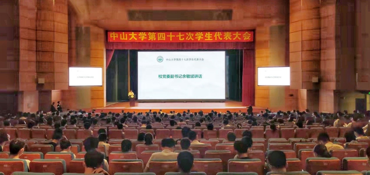 校党委副书记余敏斌向第四十七次学生代表大会的召开表示热烈祝贺,对第四十六届学生会过去一年的工作表示充分肯定。他向本科生和学生会提出了四点希望:一是坚定理想信念,传承红色基因。深入学习贯彻习近平新时代中国特色社会主义思想,赓续红色传统,传承红色基因,坚定不移听党话、矢志不渝跟党走,不断追求思想政治进步,积极向党组织靠拢。二是增强奋斗精神,推动全面发展。牢记“博学、审问、慎思、明辨、笃行”的校训,发扬“学在中大、追求卓越”的优良校风学风,珍惜学习时光,保持奋斗精神,扎好马步、打牢基础,为继续深造、报效国家奠定坚实的基础。努力提升综合素质和审美素养,强健体魄,热爱劳动,努力成为德智体美劳全面发展的社会主义建设者和接班人。三是担当时代使命,勇立时代潮头。立大志、做大事,努力追求更有高度、更有境界、更有品位的人生,把人生理想融入党和国家事业发展。心系祖国,勇于担当,时刻保持强烈的责任感和使命感,成为可堪大用、能担重任的栋梁之材。四是推进深化改革,服务广大同学。深化学生会改革,不断增强政治性、先进性、群众性,牢记全心全意为同学服务的宗旨,发挥好党联系广大学生的桥梁纽带作用,始终把广大学生团结凝聚在党的周围。