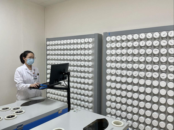 药师正在操控中药配方颗粒智能调配机(来源:肿瘤防治中心)