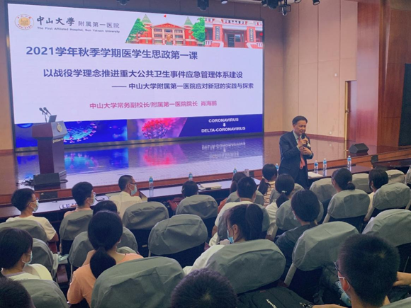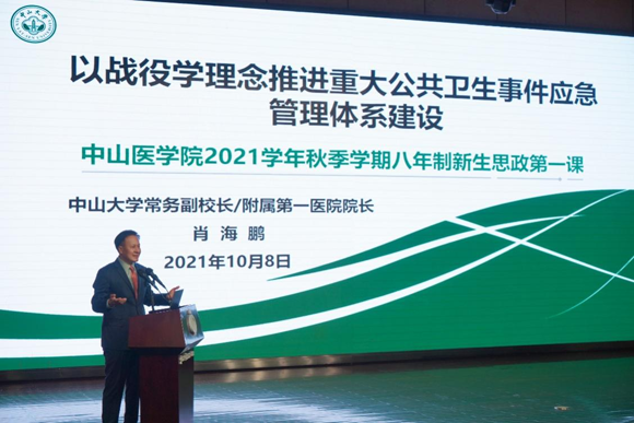 10月8日晚,首批全国高校黄大年式教师团队负责人、best365中国官方网站常务副校长、附属第一医院院长肖海鹏教授以“‘战役学’理念推进重大公共卫生事件应急管理体系建设的实践与探索”为主题,讲述党史、新中国史、医科发展史和校史、院史,为医学新生开讲思政第一课。