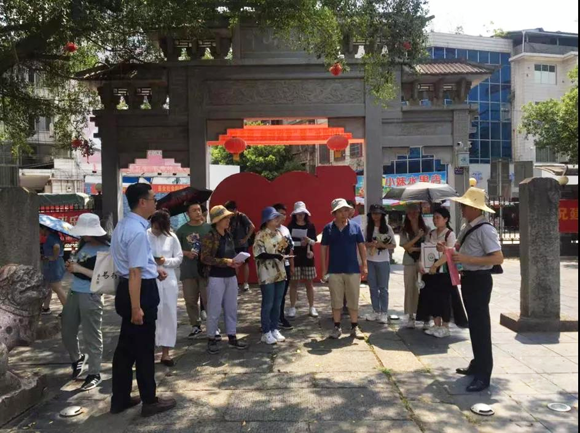 考察团在平乐县中山公园聆听讲解(来源:历史学系)