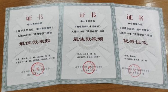 中大新闻网讯(通讯员陈颖青)日前,我校收到教育部关心下一代工作委员会《关于公布2021年“读懂中国”活动评审结果的通知》,其中我校关工委报送,分别以政治与公共事务管理学院夏书章教授、肿瘤防治中心吴秋良教授为访谈对象的《有信仰的人永远年轻》、《在平凡的岗位,做不平凡的事》荣获最佳微视频,学生采访生命科学学院李宝健教授的文章《以信念为灯,燃一生筑梦》荣获优秀征文,我校关工委荣获优秀组织奖。