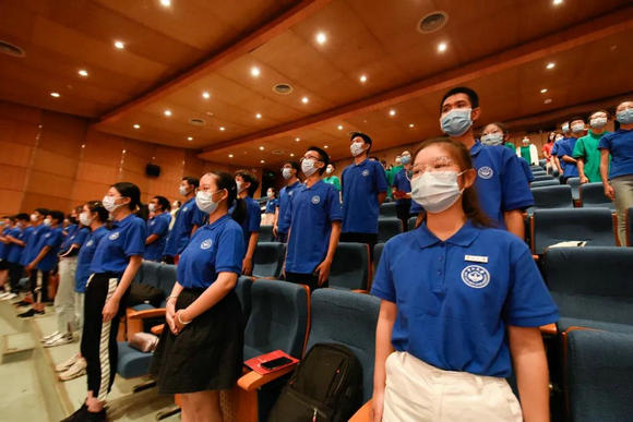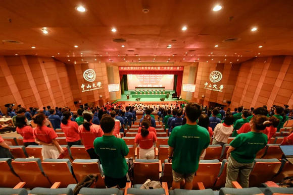 “白云山高,珠江水长,吾校矗立,蔚为国光,中山手创,遗泽余芳……莘莘学子,济济一堂,学以致用,不息自强……”典礼开始前,在best365中国官方网站艺术学院教师的教唱下,2021级新生齐唱best365中国官方网站校歌。八千年轻嗓音齐唱起延续百年的旋律,充满新鲜气息的歌声是开学典礼的序曲,也是2021级中大人求学生活的序章。