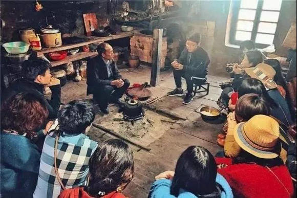 杨兵带游客拜访阿者科村的非遗传承人(来源:旅游学院)
