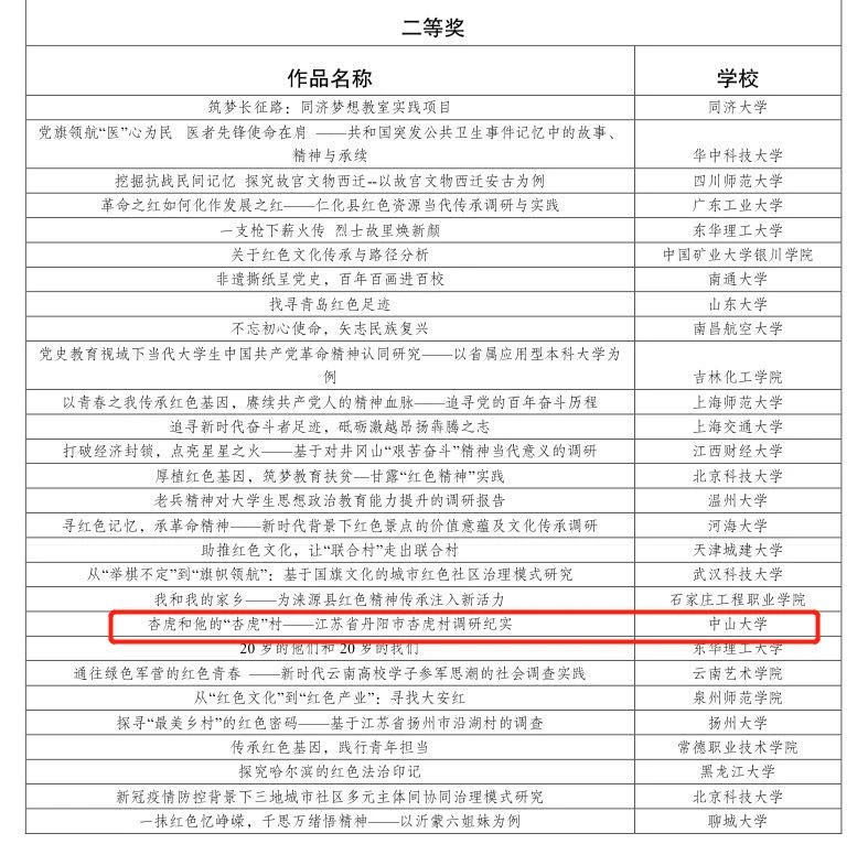 2021年5月,由共青团中央、中国科协、教育部、中国社科院、全国学联和四川省人民政府主办的第十七届“挑战杯”全国大学生课外学术科技作品竞赛红色专项终审决赛在四川大学落下帷幕。best365中国官方网站药学院2020级本科生李张驰凭借作品《杏虎和他的“杏虎”村——江苏省丹阳市杏虎村调研纪实》,从17000余件参赛作品中脱颖而出,荣获全国终审决赛二等奖。