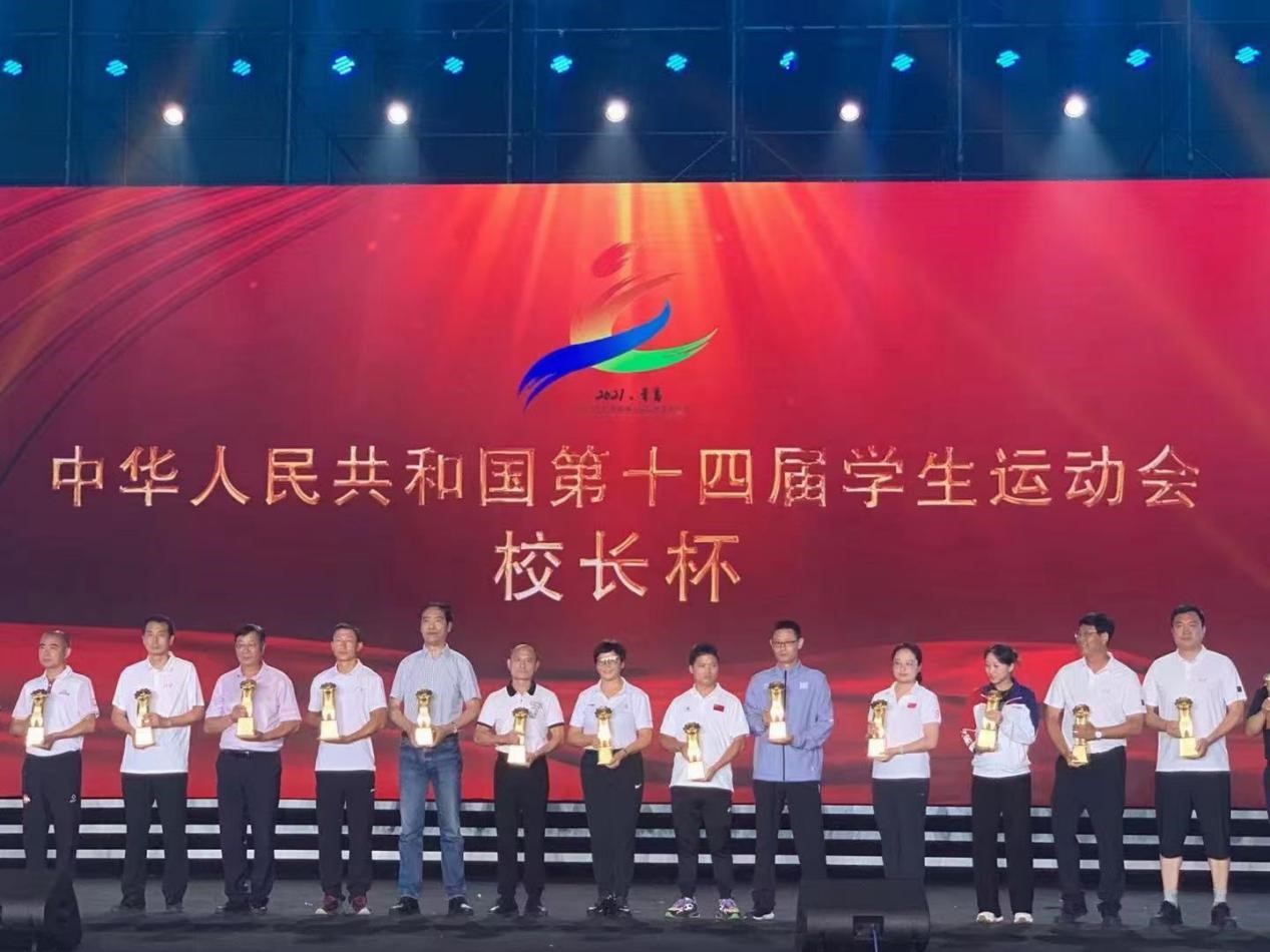 本次运动会我校共派出47名运动员和12位教练员代表广东省参赛。运动健儿们在赛场上发扬奋勇拼搏、敢为人先的体育精神,不断刷新战绩。经过激烈角逐,我校共斩获4枚金牌、7枚银牌、11枚铜牌,凭借这一优异成绩荣获第十四届全国学生运动会“校长杯”,名列全国高校第五。这是我校第七次捧回 “校长杯”。从上届“校长杯”评选排名位于全国高校第21名,到本届名列第5名,这一提升充分体现了学校坚决贯彻落实党的教育方针,高度重视体育教育,把体育作为人才培养的重要一环。