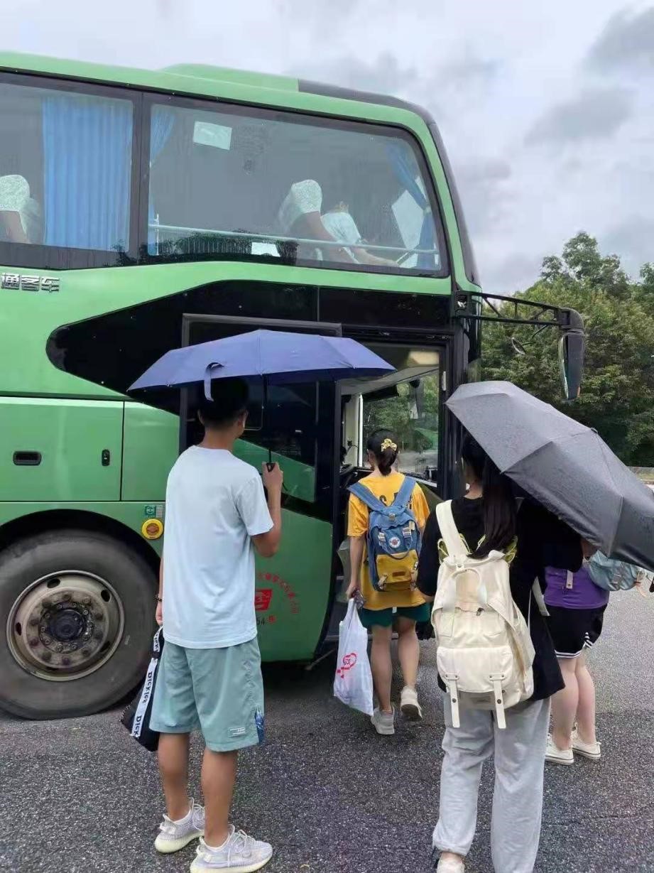 同学们有序搭乘大巴(来源:公共卫生学院)