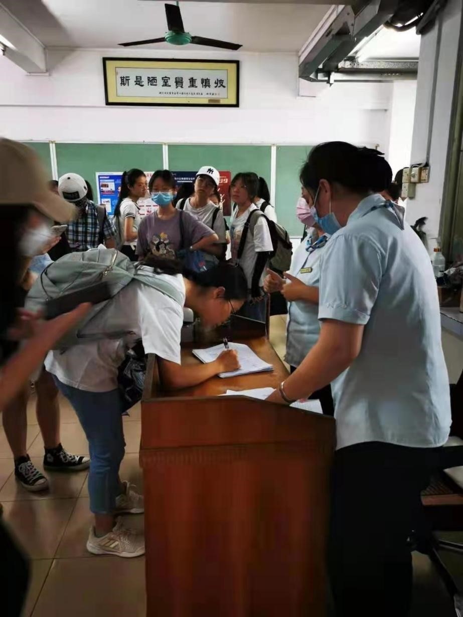志愿者协助检查看管行李(来源:公共卫生学院)