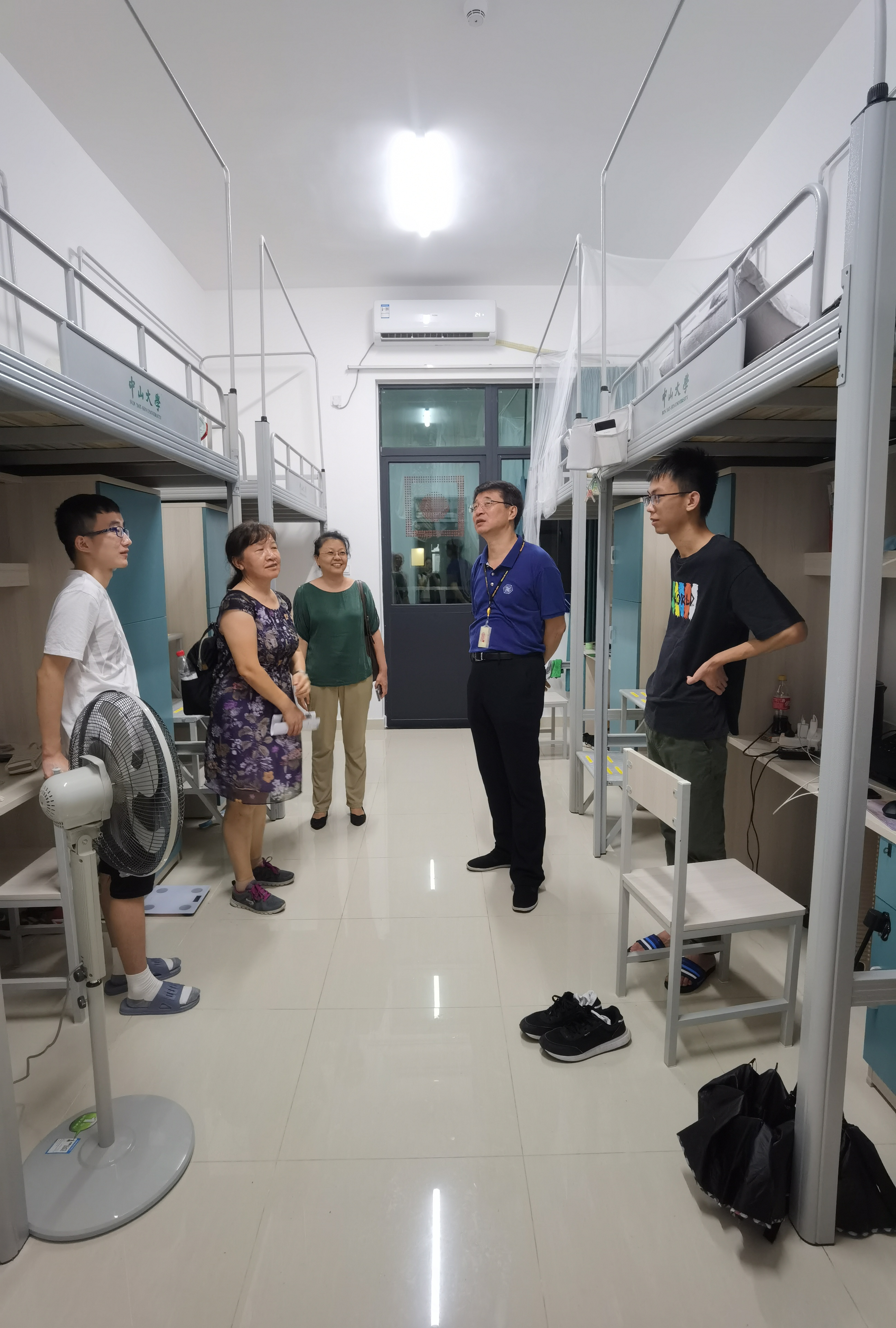 简单休整后,学院党委书记汪宗芳、副书记黄源穗、教师代表邹华春教授、周继昌副教授、刘宽程副教授、张扬副教授、辅导员黄琳老师随即走访学生宿舍,了解学生安顿情况,并就校区生活、安全、交通等进行温馨提示。汪宗芳书记勉励同学们以今日搬迁深圳校区作为新起点,赶上深圳速度,确定人生新目标,书写人生新篇章。