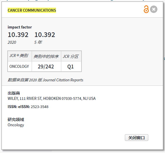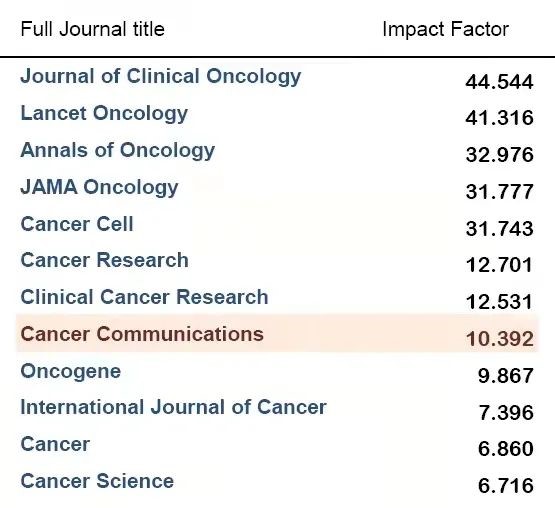 目前,Cancer Communications被世界权威生物医学检索系统和国际最大的开放获取期刊目录DOAJ等重要数据库收录,刊发文章被Nature、 Cell、 NEJM、Lancet、JAMA、JCO、Lancet Oncology、JAMA Oncology、 Cancer Cell等高影响力期刊引用,得到同行的广泛关注,已成为重要的国际肿瘤学学术交流平台。