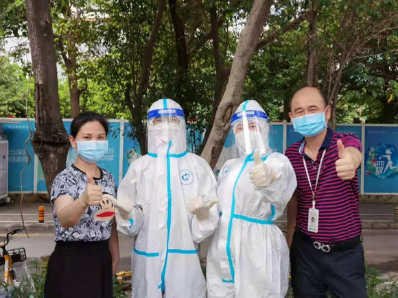 自5.21深圳盐田疫情以来,附属第八医院广大员工舍小家、为大家,而刘晓是医院最早一批冲上一线的员工。20多天来,他带领采样队员执行任务15次,几乎每次都要坚守到凌晨1时左右,其中几次“清零”任务,他最后一人坚守到了凌晨两点。任务最艰巨时,他的妻子罗小玲也承担着抗疫物资保障重任,主动请缨奔赴采样一线。虽然体力极度透支,他们坚持不下火线。“全院人手都紧张,我们在这儿,多少可以减轻同志们的压力!”