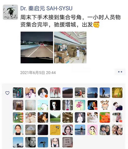秦启元当晚出发的朋友圈(来源:附属第六医院)
